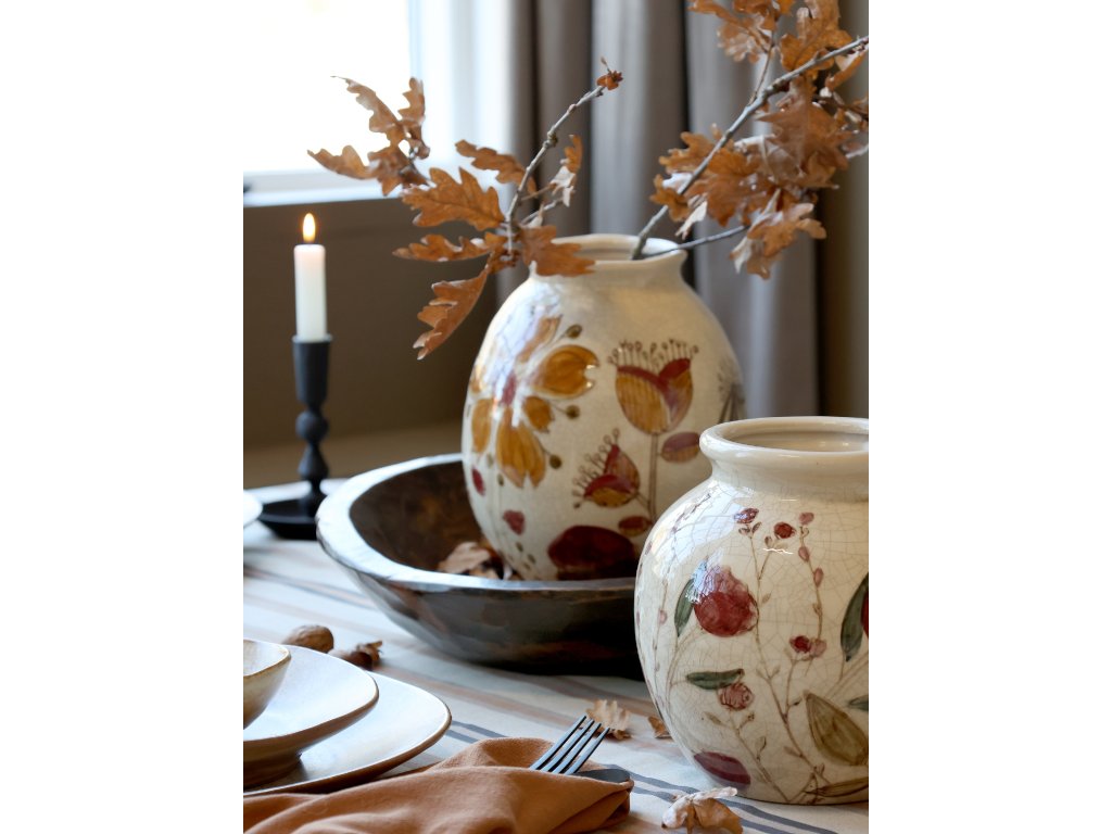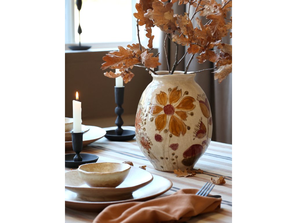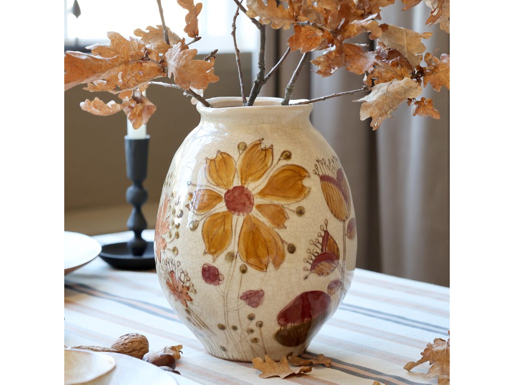 Váza v podzimních tónech s květinovým motivem