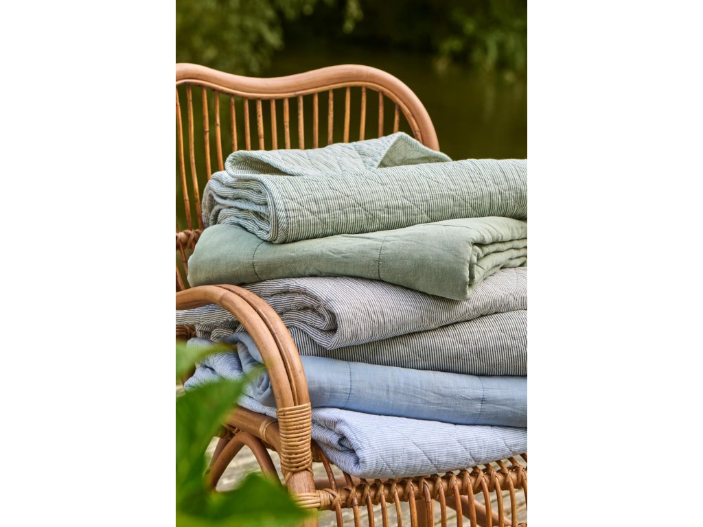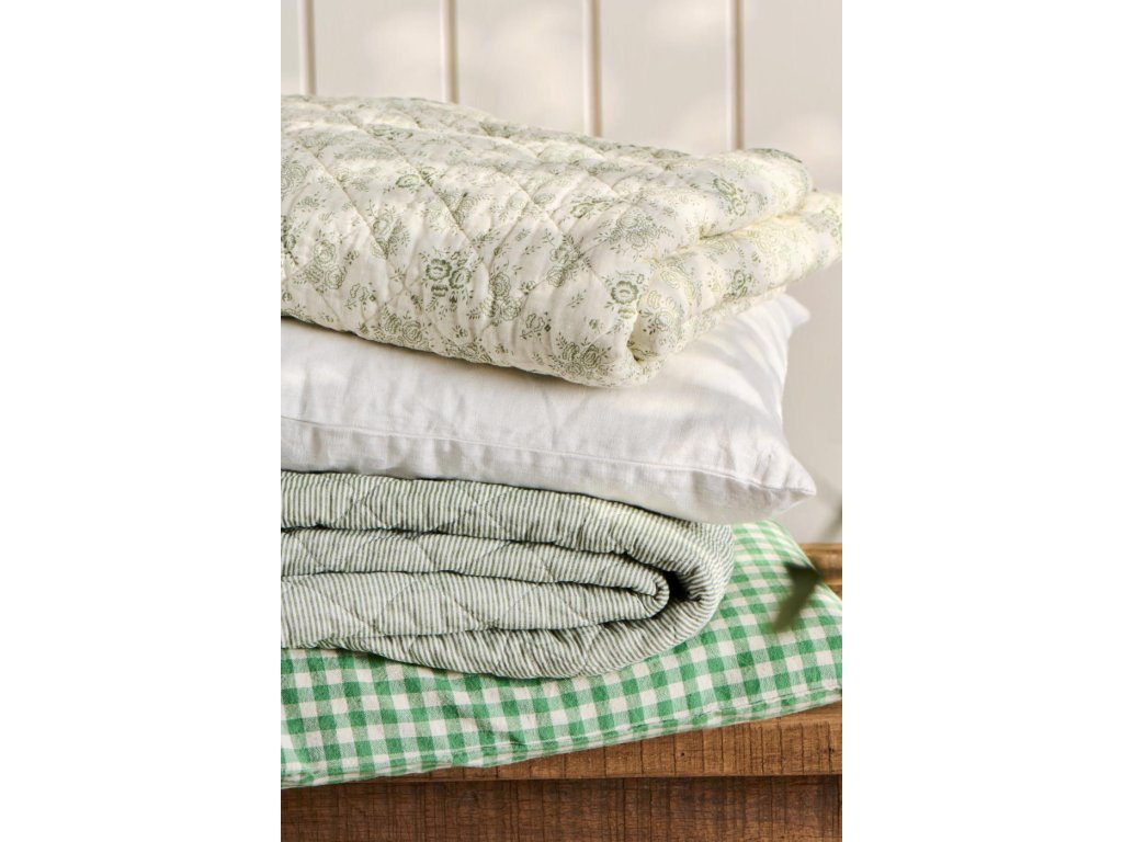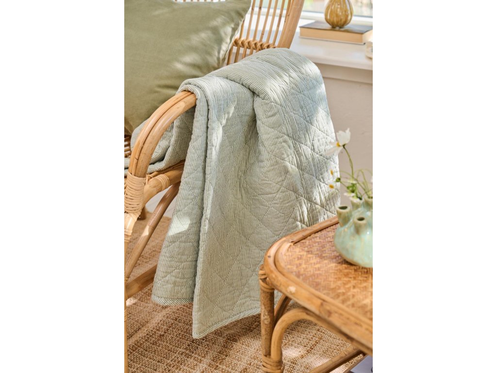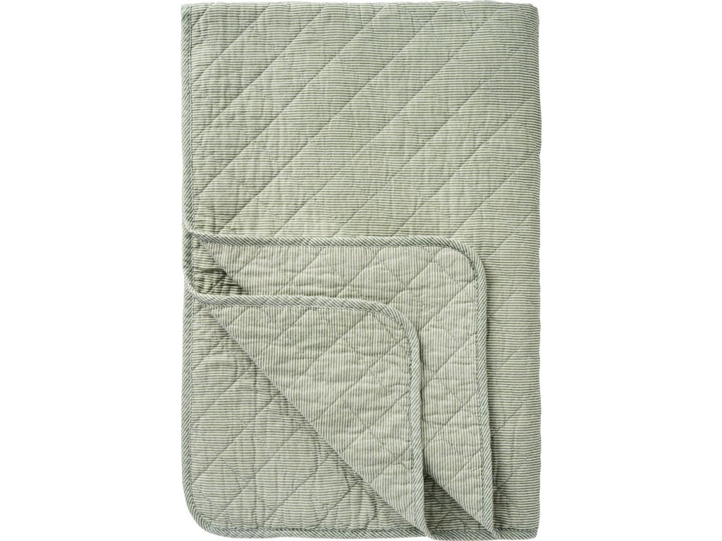 Bavlněná deka zeleno-bíle pruhovaná