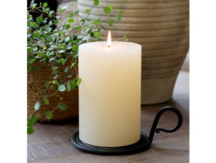 Stylový točený stojan na sloupovou svíčku. Kovový svícen černé barvy se hodí do přírodního rustikálního interiéru. Velmi stabilní díky točitému dnu a s praktickým uchem pro...