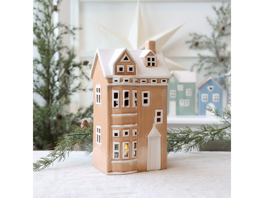 Svícen ve tvaru domku Chamonix barvy pudrové