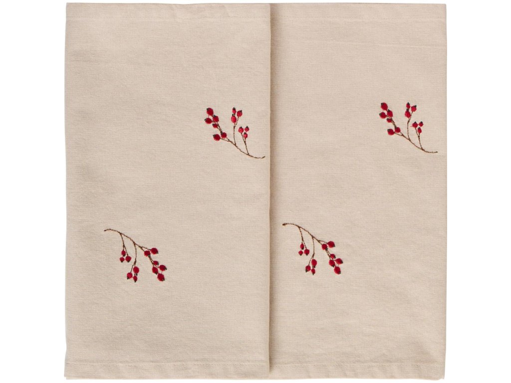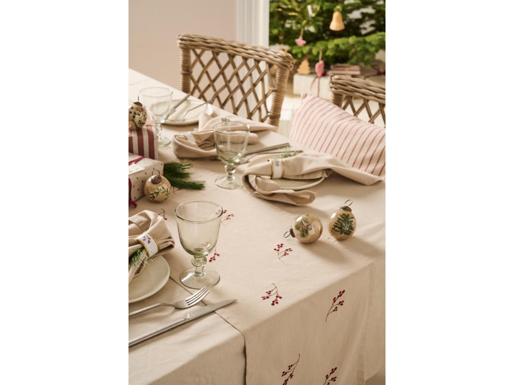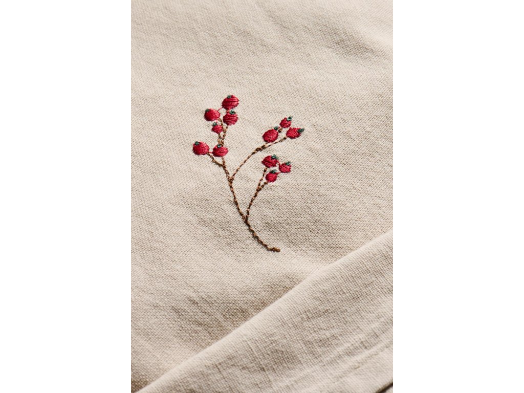 Lněný běhoun na stůl přírodní s červenými bobulemi